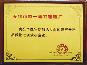 本廠視質(zhì)量為生命,并已率先通過ISO9001:2008國際質(zhì)量體系認(rèn)證,是“重合同、守信用”的AAA級企業(yè)、無錫市首批“五星級”企業(yè)和計量合格單位,成為“全國消聲器 質(zhì)量過硬放心企業(yè)”和國內(nèi)大型鍋爐廠的合格供方。受國家環(huán)??偩值难垼贫恕陡邏簹怏w排放小孔消聲器》認(rèn)定技術(shù)條件(HJT382-2007)。